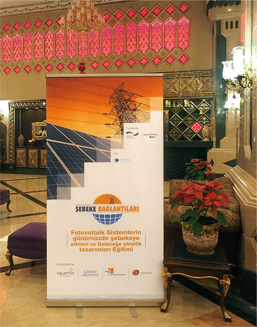 Dieses Wissen wird im Rahmen des Projektes an relevante Zielgruppen – Netzbetreiber, Handwerkskammern der Elektriker, Universitätsdozenten (Train the trainer) und Studenten an verschiedenen Standorten in der Türkei vermittelt. Dazu werden je nach Zielgruppe von der DGS Berlin spezifische Präsentationen erarbeitet, vermittelt und zur Verfügung gestellt. Weiterhin werden verschiedene Berechnungstools erläutert.